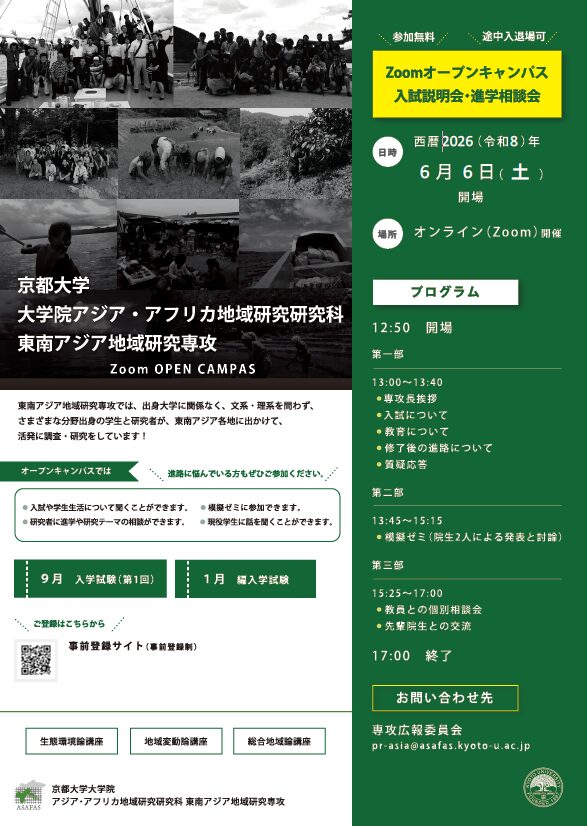 東南アジア地域研究専攻オープンキャンパス2026(6月6日開催)